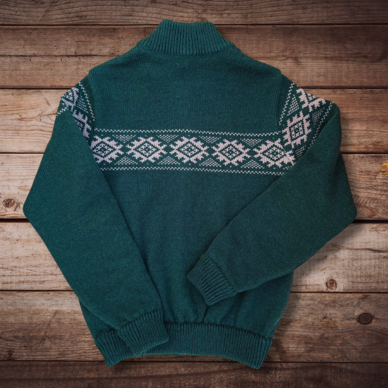 Men's full-zip woolen sweater with a Scandic pattern