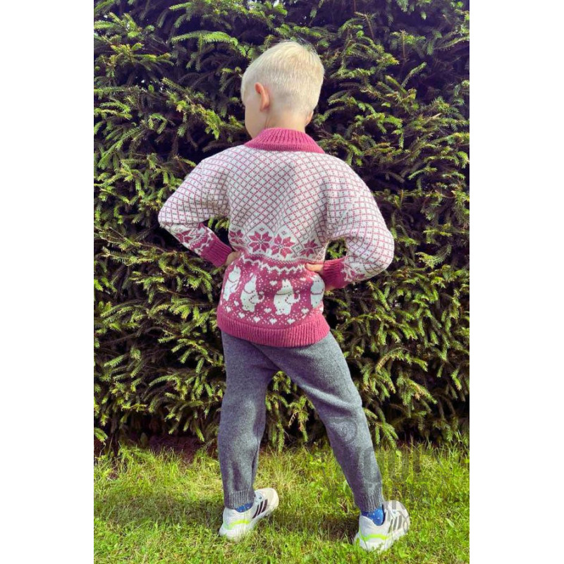Laste kampsun Mumitrolliga on ideaalne valik lastele, kellel meeldib talvel õues mängida. 100% lambavillast kootud kampsun lukuga on väga pehme ja mugav
