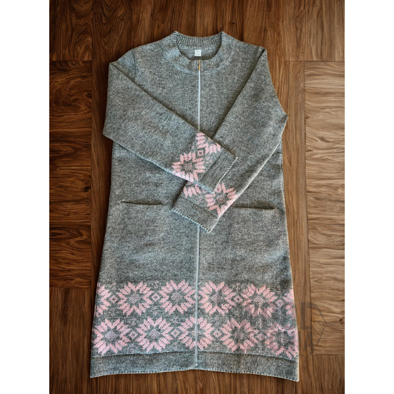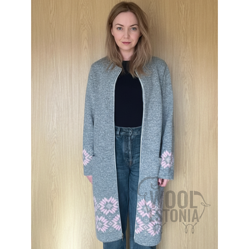 Pikem vaba lõikega mudel, roosa tooniga dekoratiivne lillemuster varrukatel ja allääres. Soe, pehme ja stiilne.