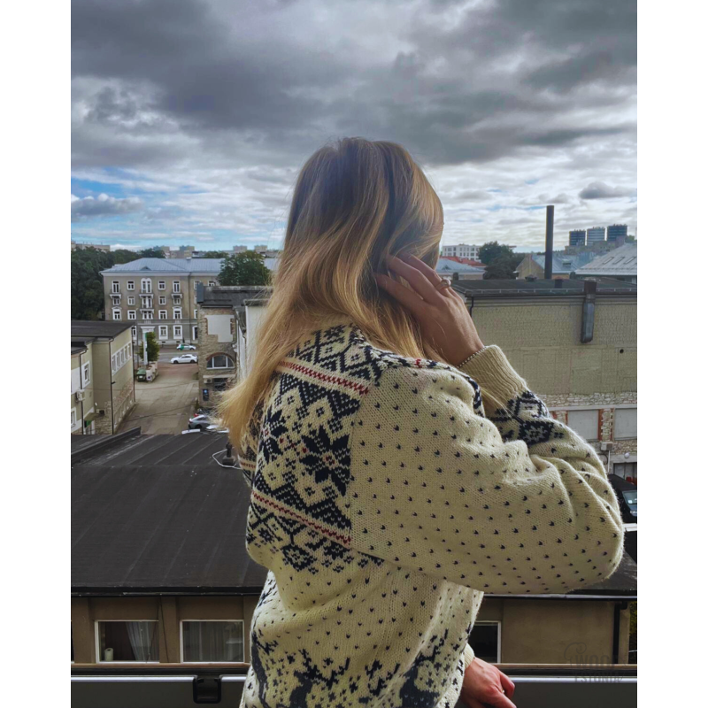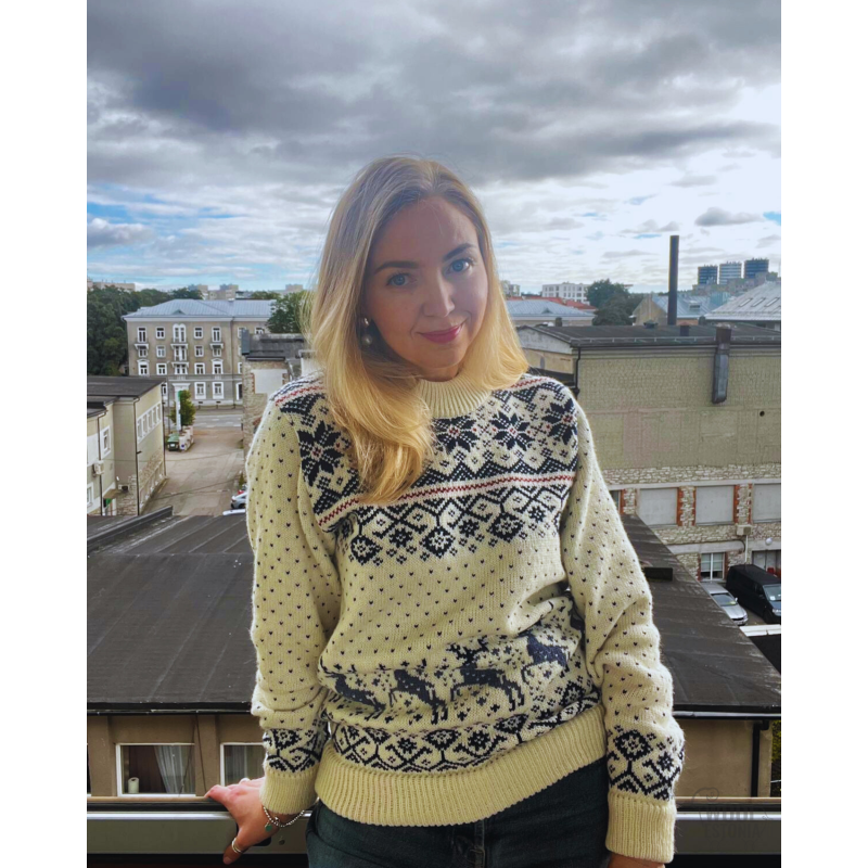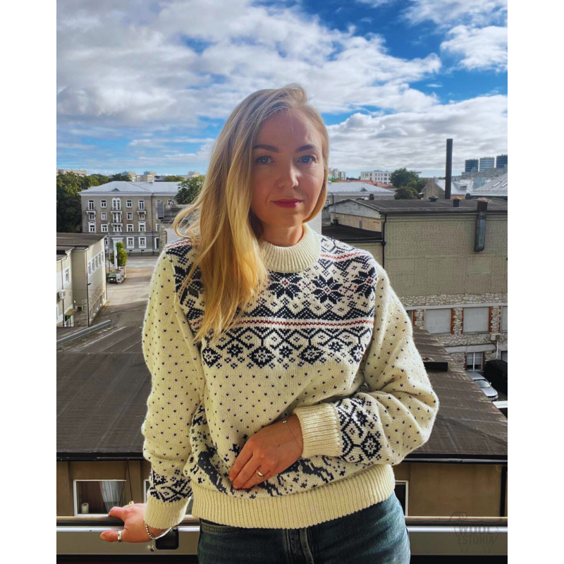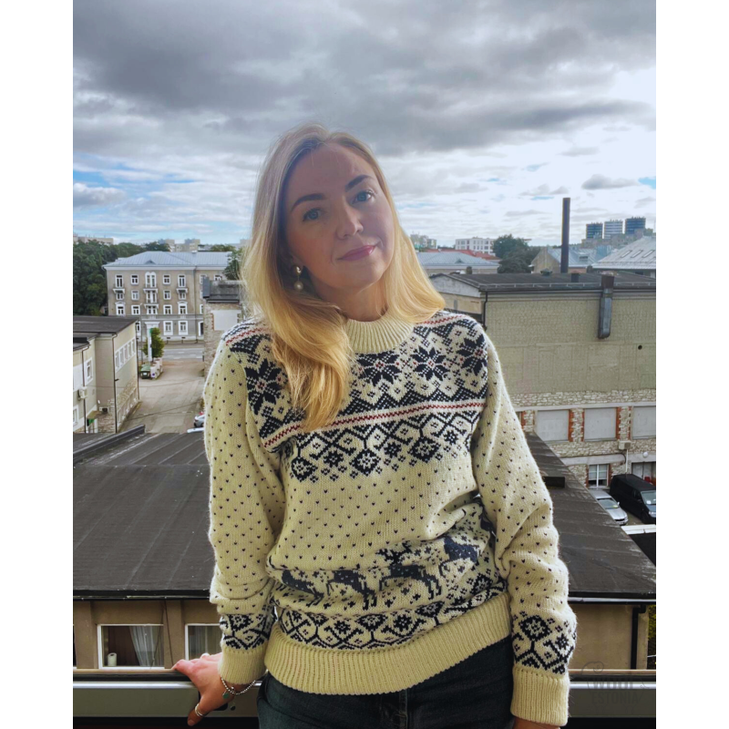 Hubane ja soe kootud džemper 100% naturaalsest pehmest lambavillast. Stiilne naiste džemper mugavas klassikalises stiilis, originaalse "Hirv" mustriga on suurepärane lisa Teie sügis-talve garderoobile