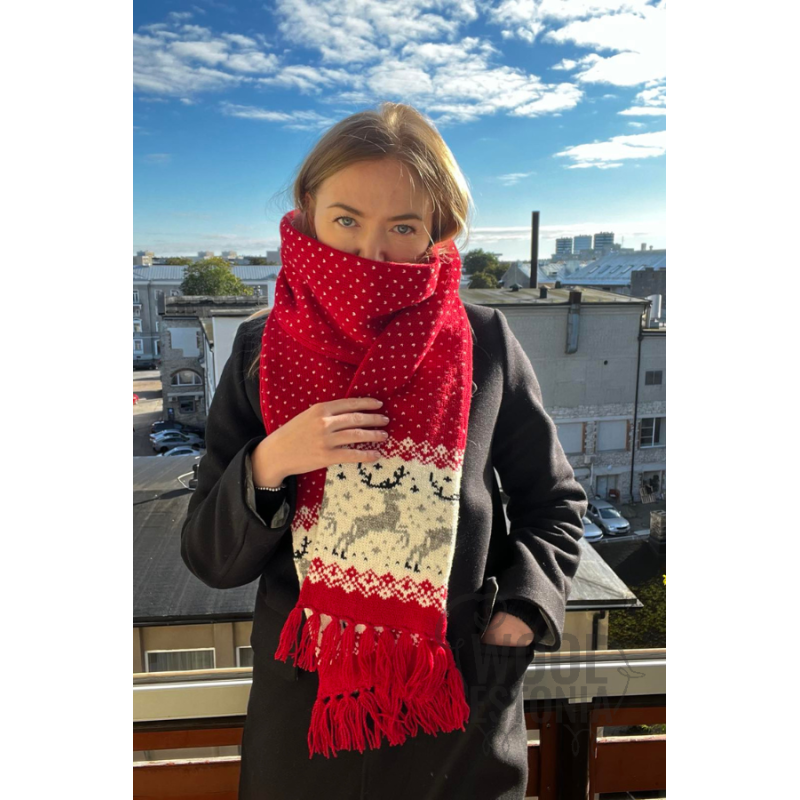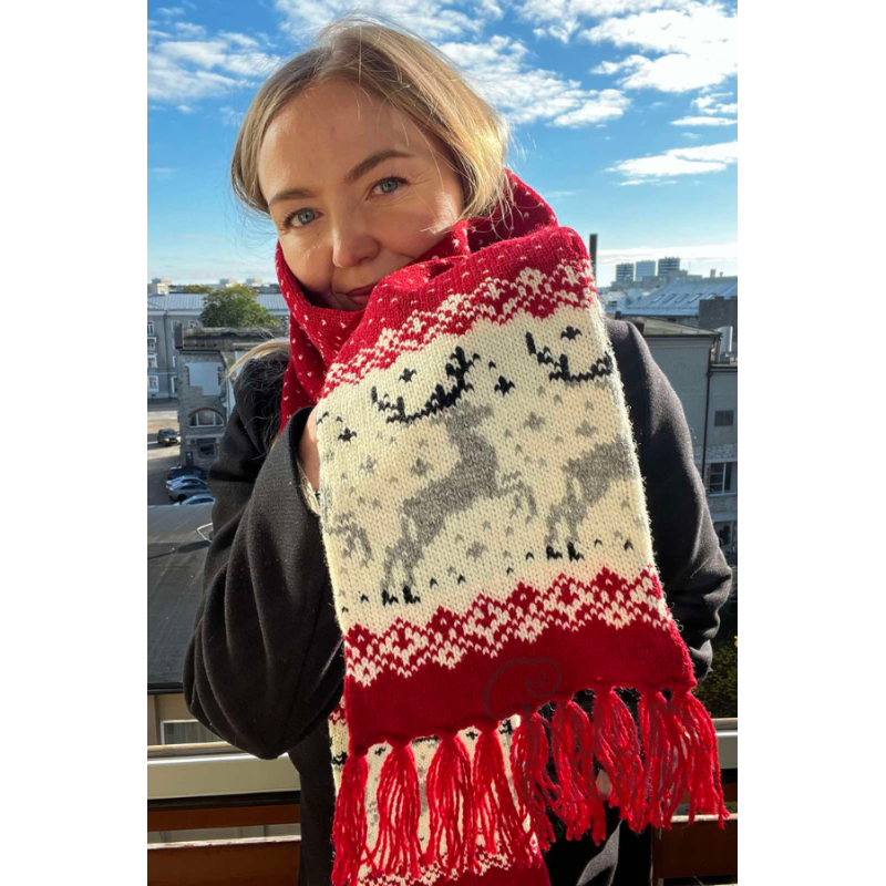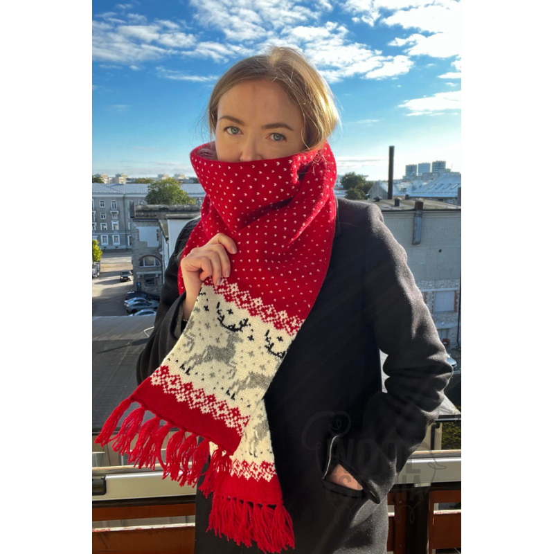 Villane sall hirvega-ainulaadne muster. Tehtud 100% lambavillast. Sobib suurepäraselt kingituseks, sest ei eksi suurusega. Salli saab ka eritellimusena teha teile sobivas suuruses.