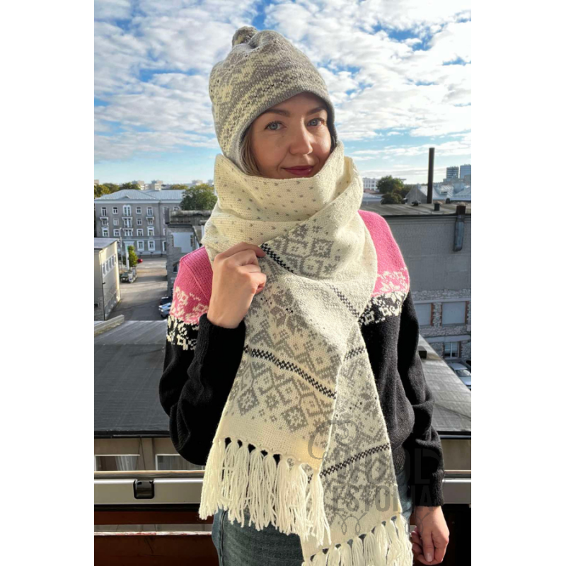 Шерстяной вязаный шарф со звездой выполнен из 100% шерсти. Незаменимая вещь в каждом гардеробе. Шерстяной шарф поможет согреться в любые морозы и подчеркнет Вашу индивидуальность. Шерстяная вязаная вещь-это нестареющая классика, которая всегда будет в моде.
