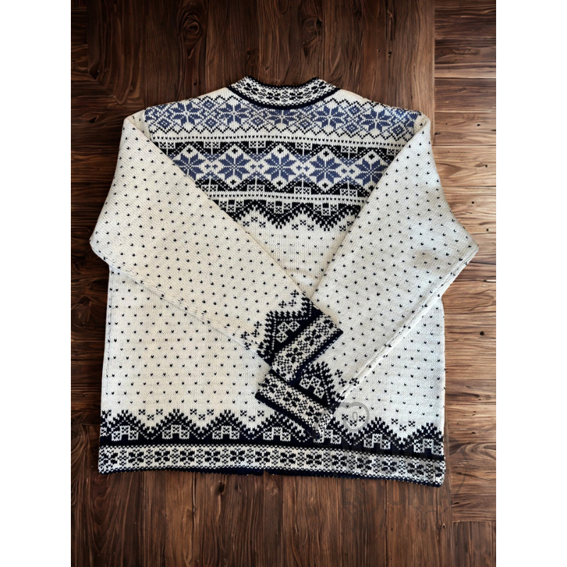Эстонские свитера с момента своего появления практически не выходили из моды. Изначально такие изделия использовались для занятий спортом, но со временем люди оценили все преимущества такой одежды и стали носить их в повседневной жизни. Элегантный джемпер с комбинированным узором в горошек, снежинками и оленями – это подходящий вариант для тех, кто выбирает удобную, но стильную одежду. Свитер станет украшением рабочего образа в стенах вашего офиса или согреет на горнолыжном курорте перед камином с чашечкой горячего чая. Свитер с элегантной застежкой изготовлен из натуральной шерсти, поэтому вам будет комфортно в нем даже в самые сильные холода, к тому же носить изделие можно и как удобный свитер, и как элегантный кардиган. Свитеры с эстонским узором отлично сочетаются как с джинсами, так и с юбками-карандаш, расклешенными юбками, шерстяными шортами или брюками скинни. Данная модель имеет приталенный силуэт, поэтому она не добавит вам лишних килограмм, а напротив, сделает фигуру визуально стройнее и привлекательнее. Уютный эстонский свитер - это нестареющая классика, поэтому он еще долгое время не выйдет из моды, и будет радовать вас своим теплом.