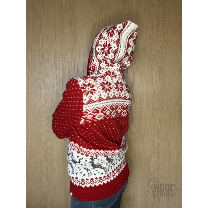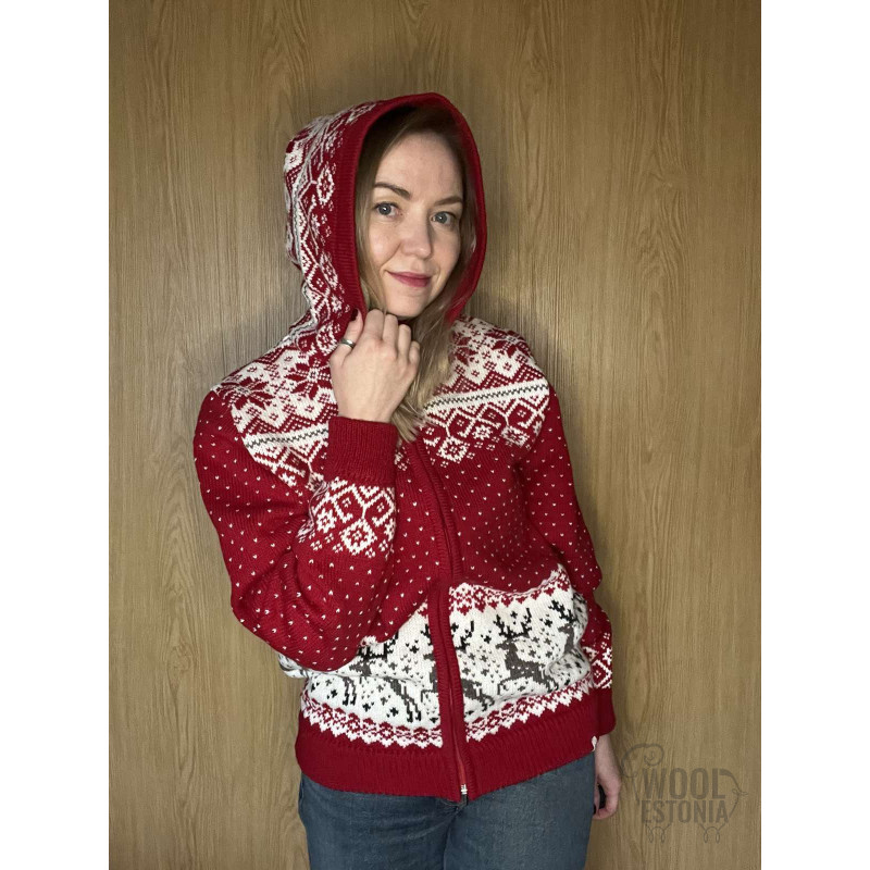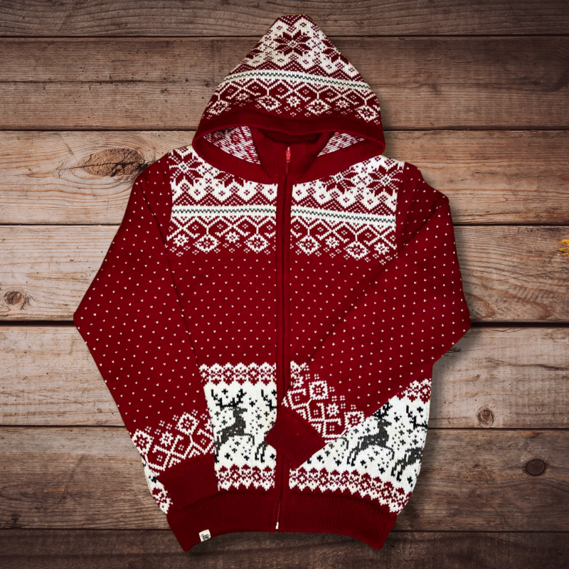 Женский свитер с оленем, изготовленный из 100% натуральной овечьей шерсти. Этот вязаный свитер на молнии и с капюшоном создаст невероятный уют и тепло в холодное время года.